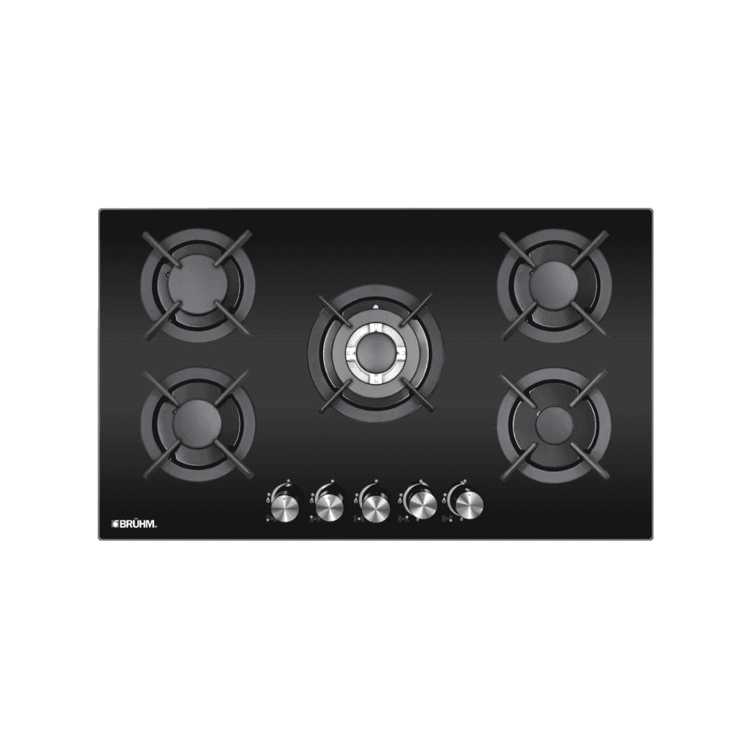 Bruhm 5 Burner Inbuilt Glass Gas Cooker 90×60 – Sleek Design, Powerful Cooking