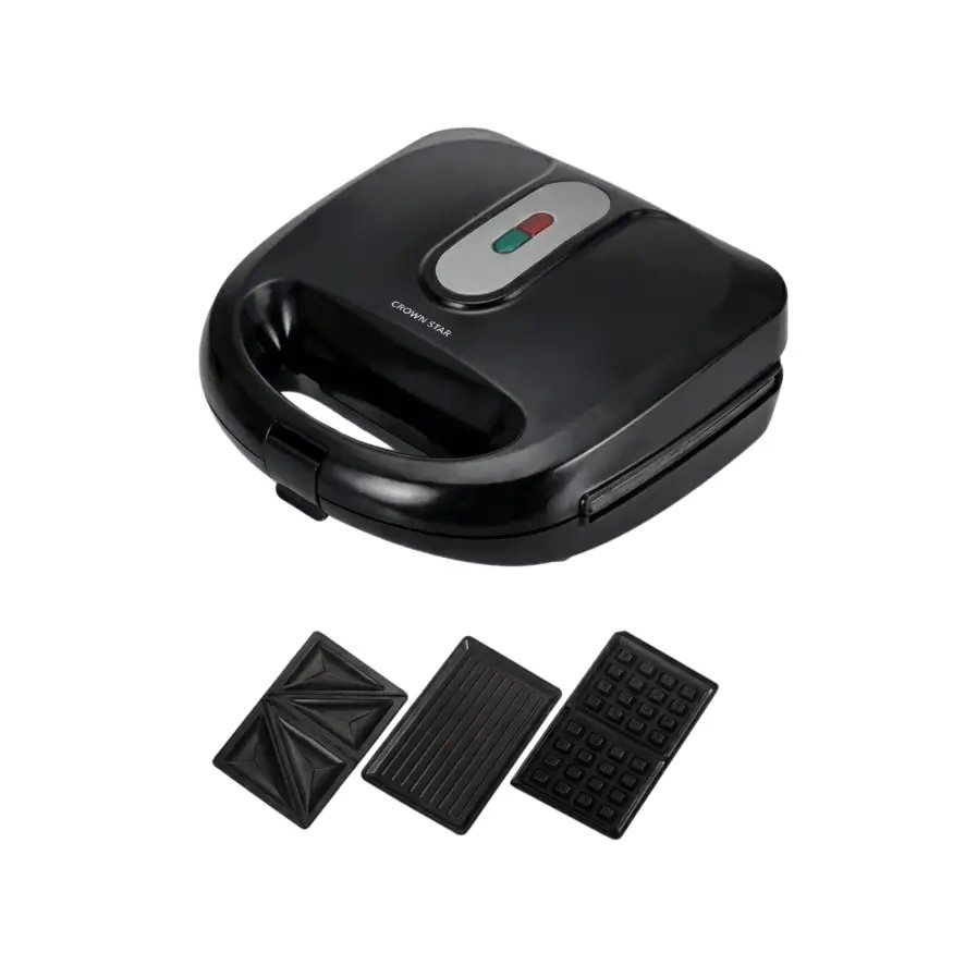 Stop cluttering your cabinets with multiple gadgets. The Crown Star 3 in 1 Multifunction Sandwich Maker replaces your toaster, waffle iron, and contact grill in one space-saving unit. The changeable plates are easy to snap in and out, and because they are non-stick, a simple wipe with a damp cloth is often all you need for maintenance.