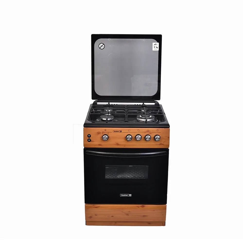 Scanfrost 60×60 4 Burner Gas Cooker with Gas Oven & Grill – CK6402NG (Wood Finish)