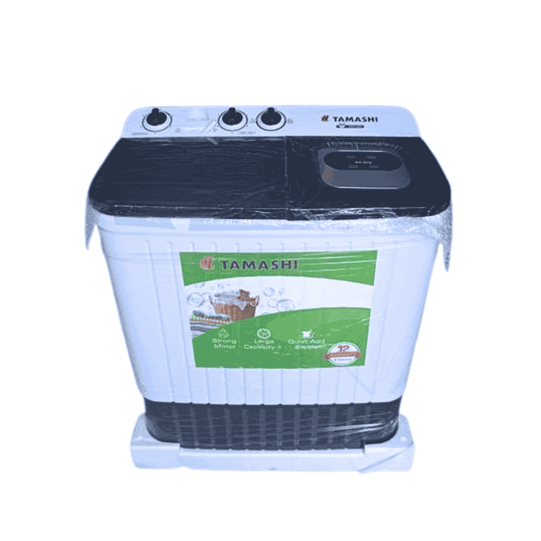 Order the Tamashi 10kg Twin Tub Washing Machine today from Likease and enjoy fast delivery to your doorstep!